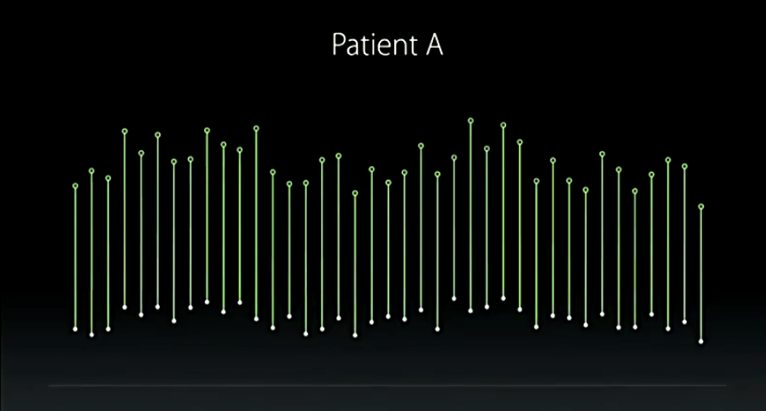 ResearchKit可以為帕金森患者的醫(yī)師提供實時的數(shù)據(jù),追蹤藥效。Jeff Williams具體舉例說:“例如這個病人甲一天的數(shù)據(jù)都被記錄下來,他用藥后病情有所好轉。其他的病人如病人乙,他的病情沒有好轉,用藥也不是很有效。所以要區(qū)分好這兩類病人。”但在這種情況下,病患本身和護理人員卻無法得到這種信息。讓患者本身得到這樣的數(shù)據(jù)信息是至關重要的,所以我們今天要發(fā)布CareKit?!?