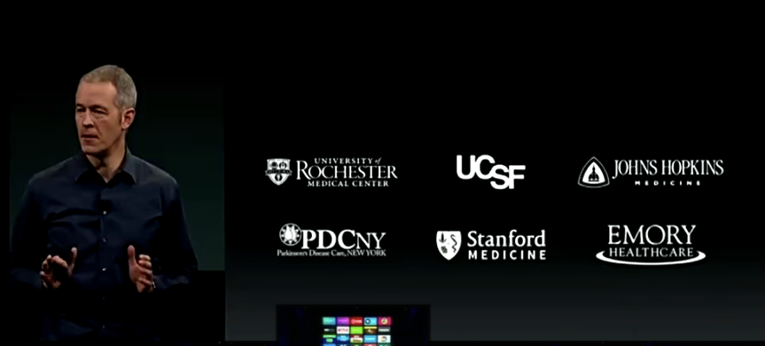 第一款是主要針對帕金森病人的應用。蘋果與圖片中包括約翰·霍普金斯大學醫(yī)學院在內的的六大機構合作,很快將會實驗這個應用,更好的了解帕金森疾病,給不同的病人提供相應的治療。