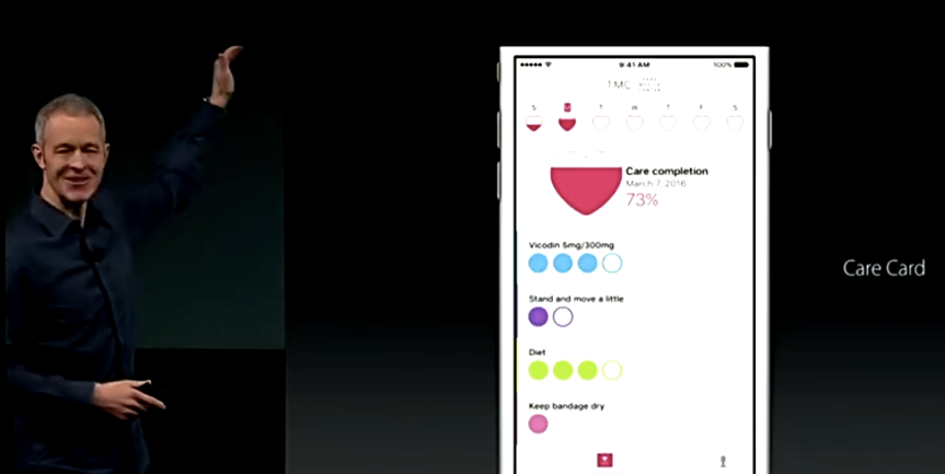 北京時間2016年3月22日凌晨,在蘋果史上短的發(fā)布會上,蘋果席運營官(COO) Jeff Williams發(fā)布了他們在健康領域中推出的開源應用CareKit, 預計將在四月上線。