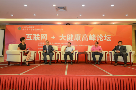 隨后,會議進入高峰對話環(huán)節(jié)。通過上半場的主題演講,大家都了解到“互聯(lián)網(wǎng)+”風頭正熱,大健康行業(yè)蓄勢待發(fā)。作為移動互聯(lián)時代的新生事物,“互聯(lián)網(wǎng)+精準醫(yī)療”及“互聯(lián)網(wǎng)+移動健康”更是引起了醫(yī)療健康產(chǎn)業(yè)、政府管理部門和社會輿論的高度關切。高峰對話環(huán)節(jié)以“互聯(lián)網(wǎng)+精準醫(yī)療”及“互聯(lián)網(wǎng)+移動健康”為議題邀請了中國老年保健醫(yī)學研究會健康產(chǎn)業(yè)促進會副會長.南京圣諾生物科技科技實業(yè)有限公司董事長王慶軍;廣州白云山醫(yī)療健康產(chǎn)業(yè)投資有限公司董事長應軍;深圳眾循精準醫(yī)學研究院院長吳松;博奧生物集團健康科學研究院院長孫義民;中國老年保健醫(yī)學研究會常務理事.易商通環(huán)球控股集團有限公司董事長高志華;博奧頤和健康科學技術(北京)有限公司總裁王國青;福建省第二人民醫(yī)院副院長、體檢中心主任黃守清;臺灣奧美集團董事長白崇亮等八位嘉賓參與話題討論。八位嘉賓分別從產(chǎn)、學、研、政策等多種角度就“互聯(lián)網(wǎng)+健康”下的健康產(chǎn)業(yè)創(chuàng)新與發(fā)展碰撞觀點,展開精彩討論。
