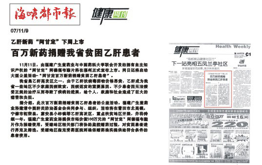 百萬新藥捐贈我省貧困乙肝患者