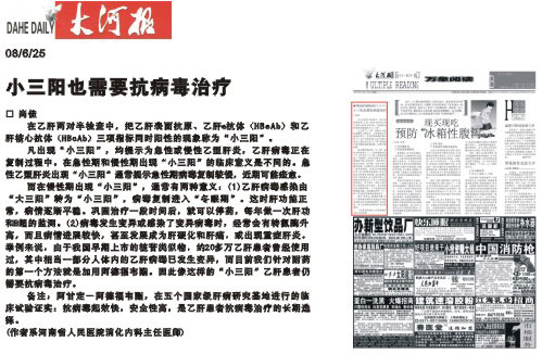 而在慢性期出現(xiàn)“小三陽(yáng)”,通常有兩種意義:(1)乙肝病毒感染由“大三陽(yáng)”轉(zhuǎn)為“小三陽(yáng)”,病毒復(fù)制進(jìn)入“冬眠期”。這時(shí)肝功能正常,病情逐漸平穩(wěn)下來(lái)。再鞏固治療一段時(shí)間后,就可以停藥,每年做一次肝功和B超的監(jiān)測(cè)。(2)病毒發(fā)生變異或感染了變異病毒時(shí),經(jīng)常會(huì)有轉(zhuǎn)氨酶升高,而且病情進(jìn)展較快,甚至發(fā)展成為肝硬化和肝癌,或出現(xiàn)重癥肝炎。舉例來(lái)說(shuō),由于我國(guó)早期上市的核苷類似物,約20多萬(wàn)乙肝患者曾經(jīng)使用過(guò),其中相當(dāng)一部分人體內(nèi)的乙肝病毒已發(fā)生了變異,而目前我們針對(duì)耐藥的第一個(gè)方法就是加用阿德福韋酯。因此像這樣的“小三陽(yáng)”乙肝患者仍需要抗病毒治療。