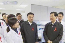 胡錦濤總書(shū)記在北京地壇醫(yī)院看望愛(ài)滋病患者 12月1日是第21個(gè)世界艾滋病日。中共中央總書(shū)記、國(guó)家主席、中央軍委主席胡錦濤和中共中央政治局常委、國(guó)務(wù)院副總理李克強(qiáng)來(lái)到北京地壇醫(yī)院考察艾滋病防治工作。這是胡錦濤同正在向醫(yī)護(hù)人員咨詢的兩位艾滋病病毒感染者親切握手、交談。新華社記者馬占成攝